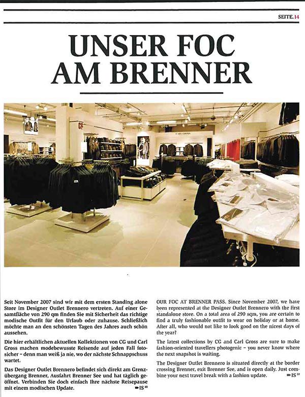 Dem immer schneller werdenden modischen Wandel musste kollektions- und marketingseitig begegnet werden. 2004 nimmt das Kollektionsteam mit der Linie „CG“ den zweiten Anlauf, eine sich deutlich von „CARL GROSS“ abhebende Kollektion zu präsentieren.