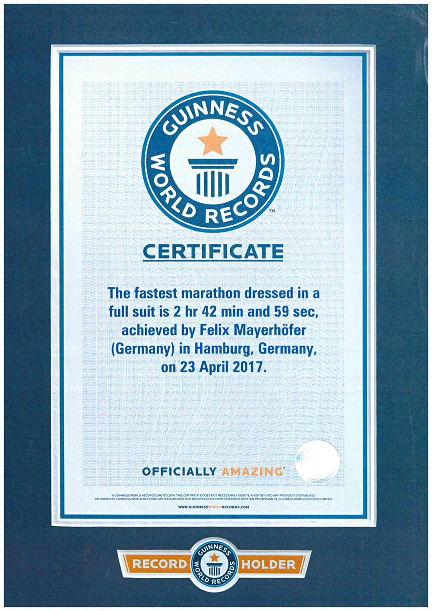 CARL GROSS lud zum Black Line Dinner in Florenz ein und konnte den Weltrekord im „Marathon mit ANZUG“ ins Guinness Buch der Rekorde eintragen lassen.